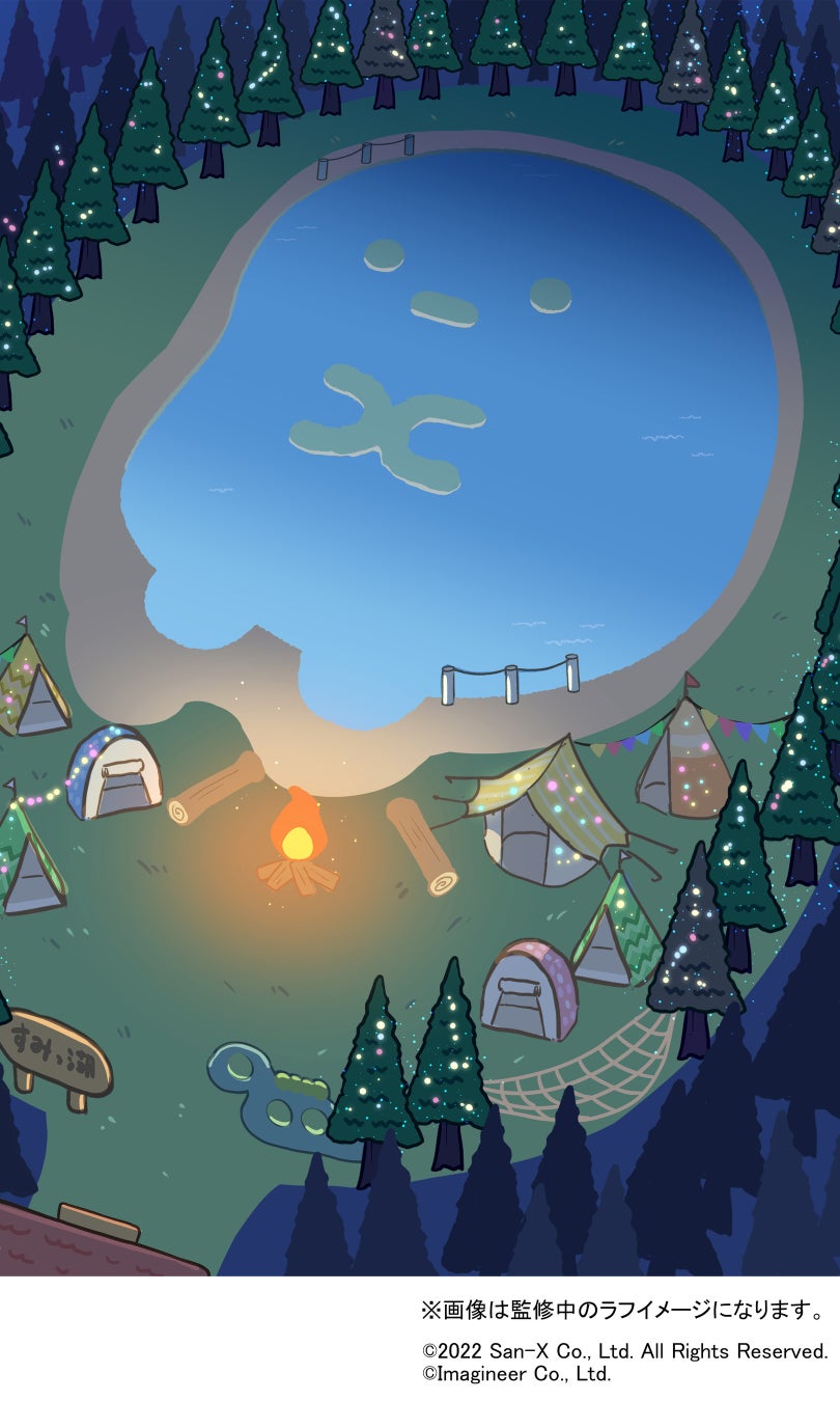 すみっコやみにっコたちが勢ぞろい!キャンプファイヤーを囲んで、ぺんぎん?が奏でるアコーティスティックギターの音色を楽しんだり、キャンプでのお楽しみイベントなど、バーチャルですみっコたちと夢の夜を過ごすことができます。
