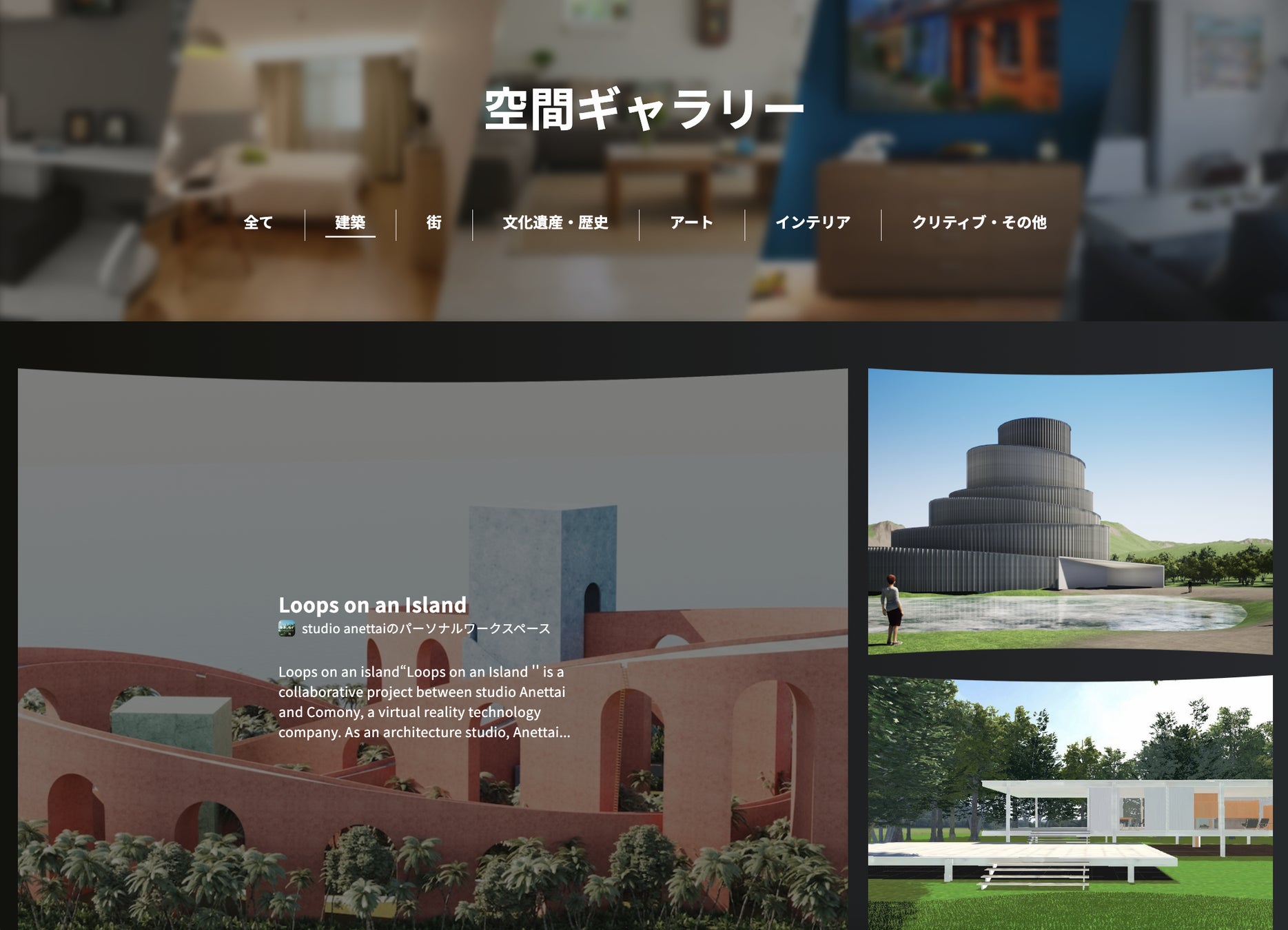 実在する建築やアンビルト建築、有名建築家の空間はもちろん、スポットライトが当たって来なかった素晴らしい作品や、遠いけどいつかは行ってみたい憧れの建築も、メタバース上で誰でも気軽に訪れることができます。comonyの建築メタバースでは、それぞれの思いを平等に届けるギャラリーを提供します。