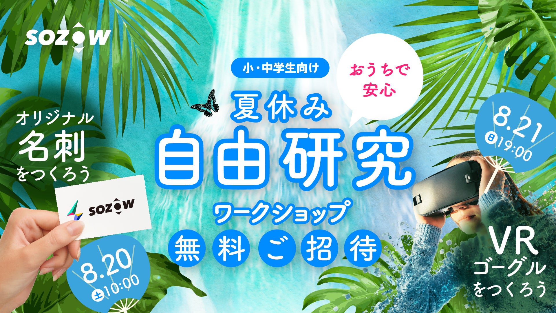 この度の新型コロナウイルス感染症の感染拡大に伴い、せっかくの夏休みを楽しみきれぬまま、おうちで過ごされている小学生・中学生が多くなっています。そんな子どもたちが「SOZOWのオンラインワークショップを通して、少しでも夏休みを豊かに過ごしていただきたい」という思いから、今回の無料招待を決定いたしました。