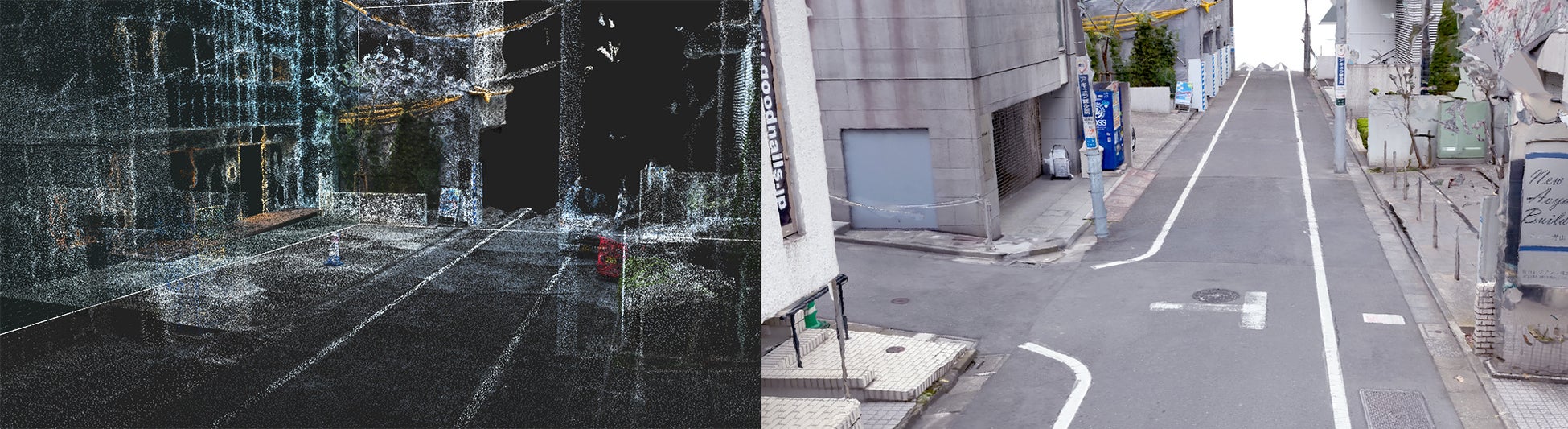 ※最新手法により都市をまるごと3Dスキャン。左がスキャン右がメタバース空間です。