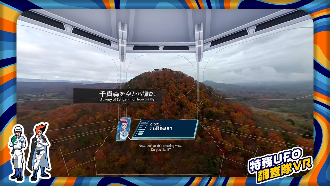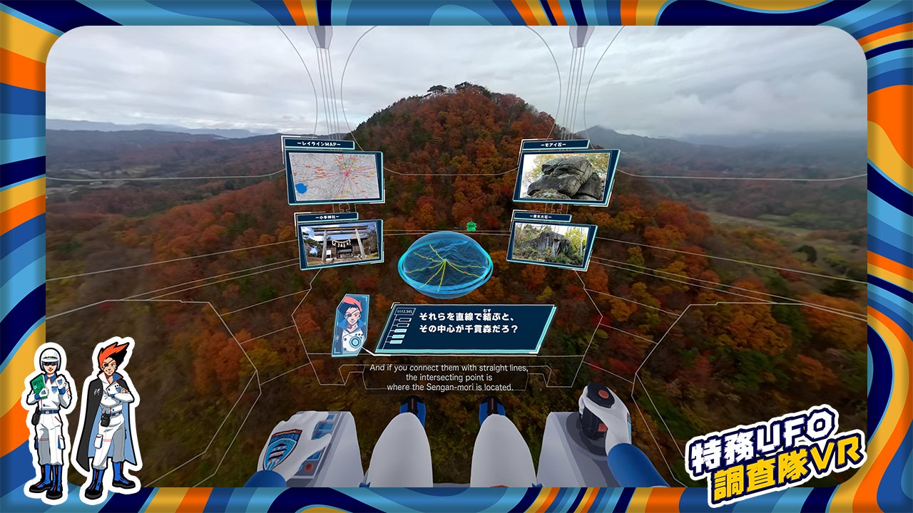 UFO調査隊のルーキーであるあなたは空飛ぶ調査船オクタゴーンに乗り込み調査を開始。センパイの指示に従いながら、『千貫森』をはじめとしたミステリースポットを調査する、臨場感あふれるVR映像コンテンツです。