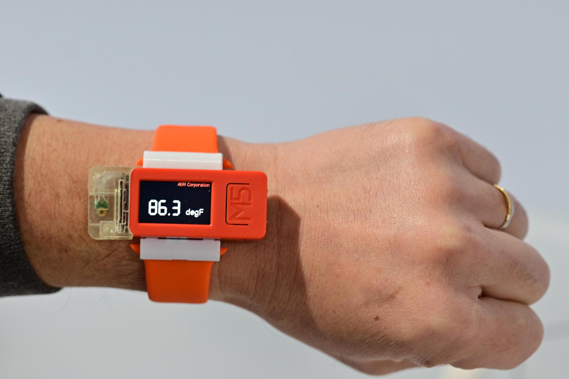 超小型・超低消費電力の非接触式温度センサーを搭載したリストバンド型コンセプトデモ機。皮膚体温の変動を正確に測定し、フィットネスゲームなど運動を伴うAR・VR使用時のユーザー体験を向上させる