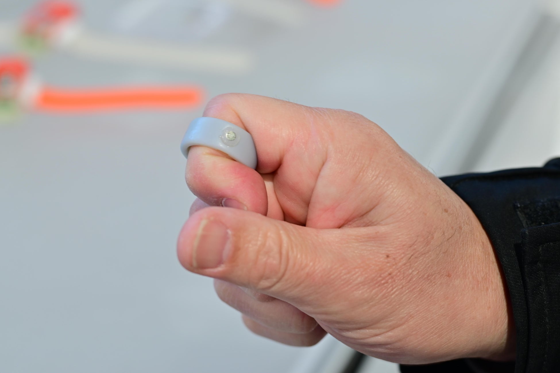 公共の場でのAR・VR使用を想定した指輪型インターフェース。付属のボタンにより人前でもさりげない操作が可能