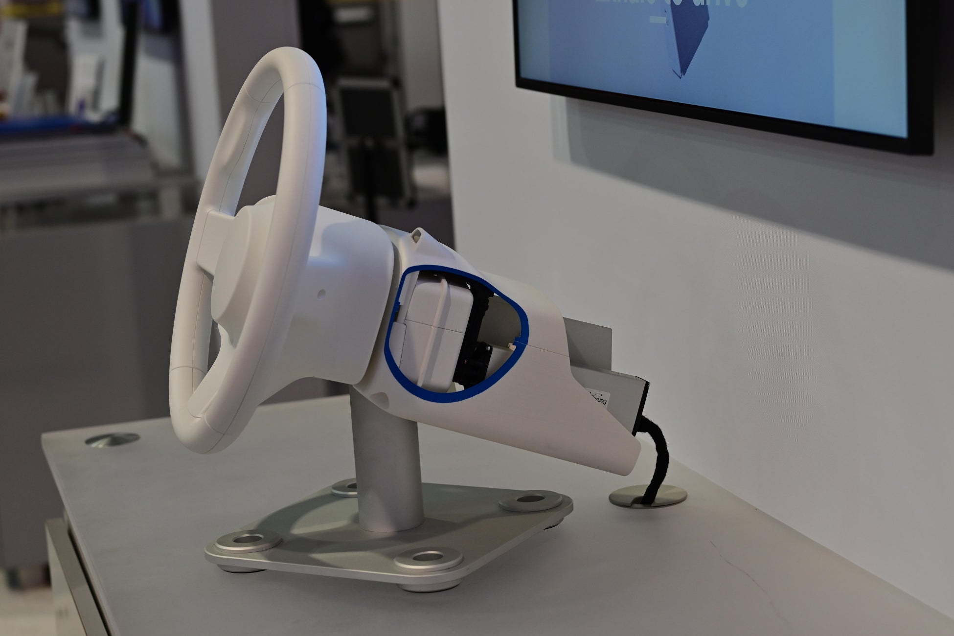 米国では飲酒運転事故の死亡者が年間1万人を超えており※1、昨年成立したインフレ抑制法でも、飲酒運転を防ぐ技術の導入が義務付けられました。今回は、呼気に含まれるアルコールを数秒で自動検知できるハンドル組み込み型センサーをデモ展示しました。センサーとエンジンを連動させ、アルコールが検知されるとエンジンが停止するシステム「アルコールインターロック」への活用が可能です。