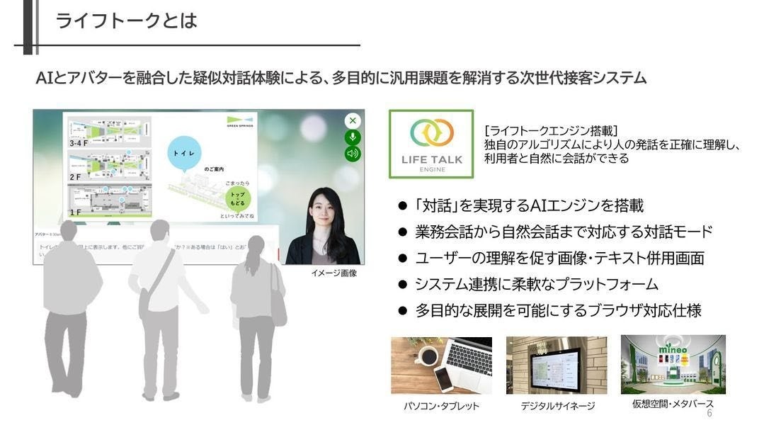 AIとアバターを融合した疑似対話体験による、多目的に汎用課題を解消する次世代接客システムです。