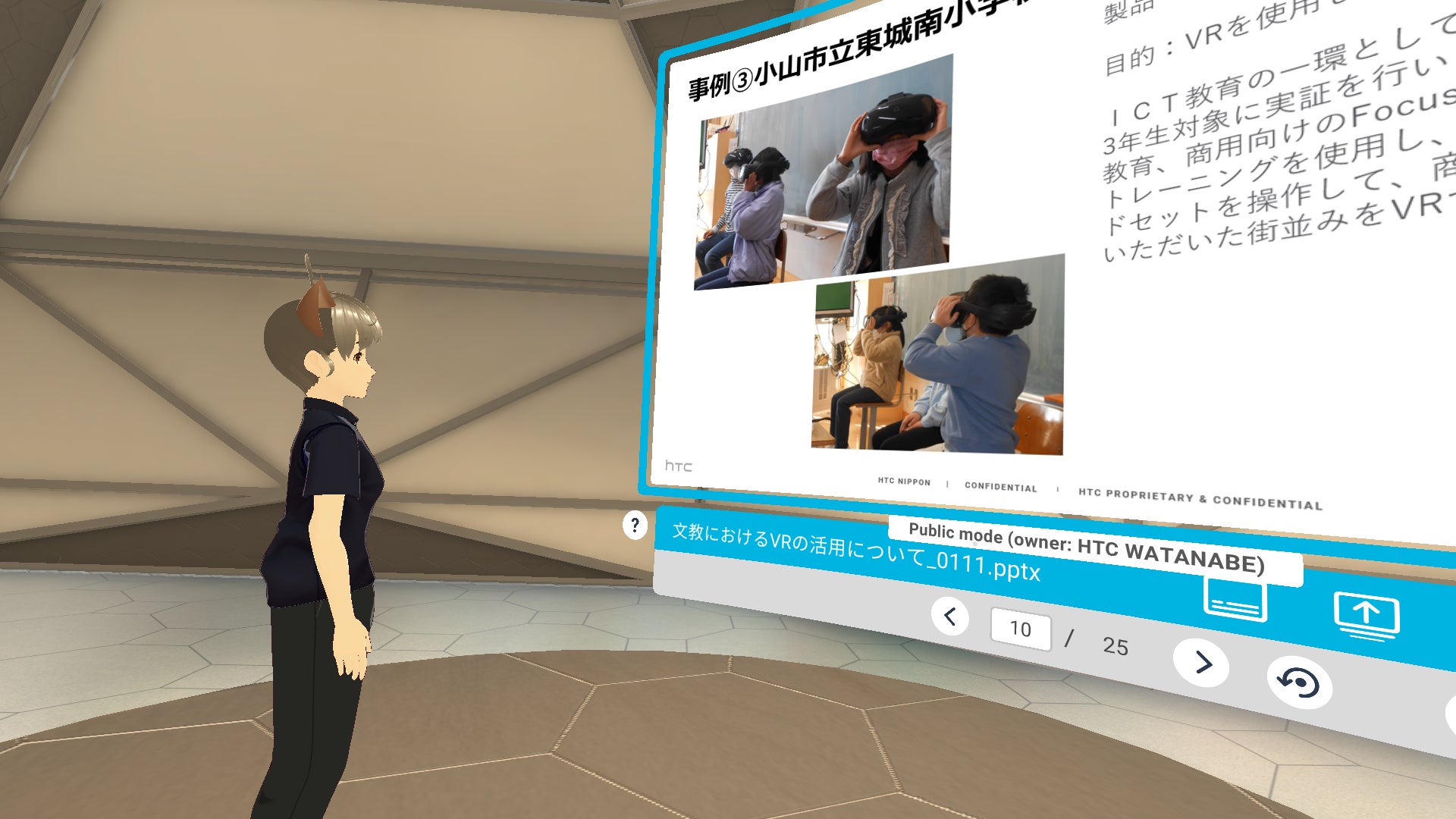 パワーポイント資料、動画・3Dファイル、ウェブブラウザなどをバーチャル空間に表示することもできます。