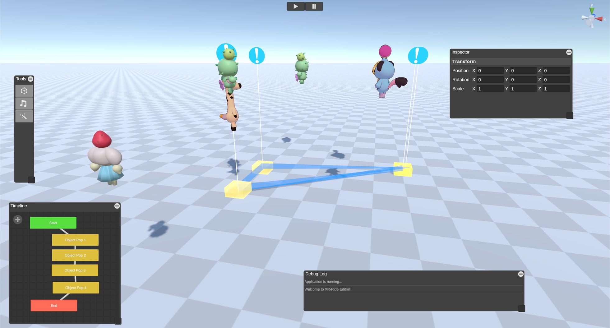 | このシステムでは、PC上のコンテンツエディターでコンテンツの作成や編集を行い、それを書き出すだけでXR×ライドで体験するコンテンツとして動作させることが可能なので、簡単にコンテンツの作成ができるだけでなく、柔軟なコンテンツの運営をサポートします。 |