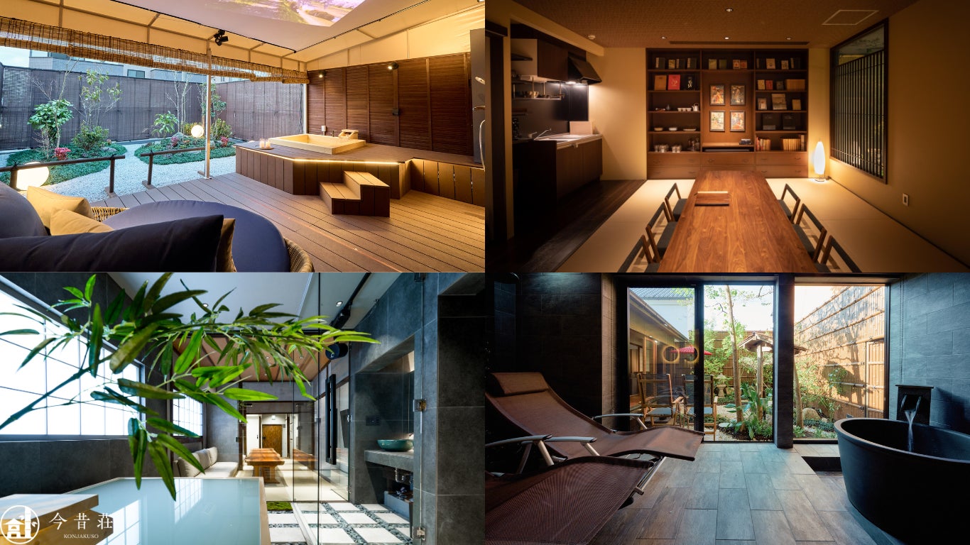 | 「今昔荘」ブランドは、日本の伝統と現代の快適さを融合した宿泊施設です。全施設がセルフサービス形式ながらも、露天風呂やホームシアターを備えるなど、プライベートな空間で特別なひとときを過ごせるのが特長です。2024年11月時点で11施設を運営しており、大阪の鶴橋に位置する「鶴寿」、道頓堀の「寄合 」「書肆」「合薬屋」、心斎橋の「樽廻船」、弁天町の「光湯屋」「屋上庭園」、天保山の「生洲」「高灯籠」、天下茶屋の「日本茶」を、奈良には「蒸風呂邸」を展開しています。各施設が土地の文化や歴史に由来するテーマを持っており、設備や宿泊可能人数も異なりますので、詳細については 今昔荘公式ホームページ をご覧ください。 |