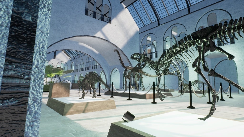 フクイラプトルやフクイサウルス、フクイベナートルなど福井県で発掘された恐竜化石の全身骨格をバーチャル空間で再現!骨格の一部を手に取ったり、化石を間近でのぞき込んだりするなどVRならではの体験ができます。 |