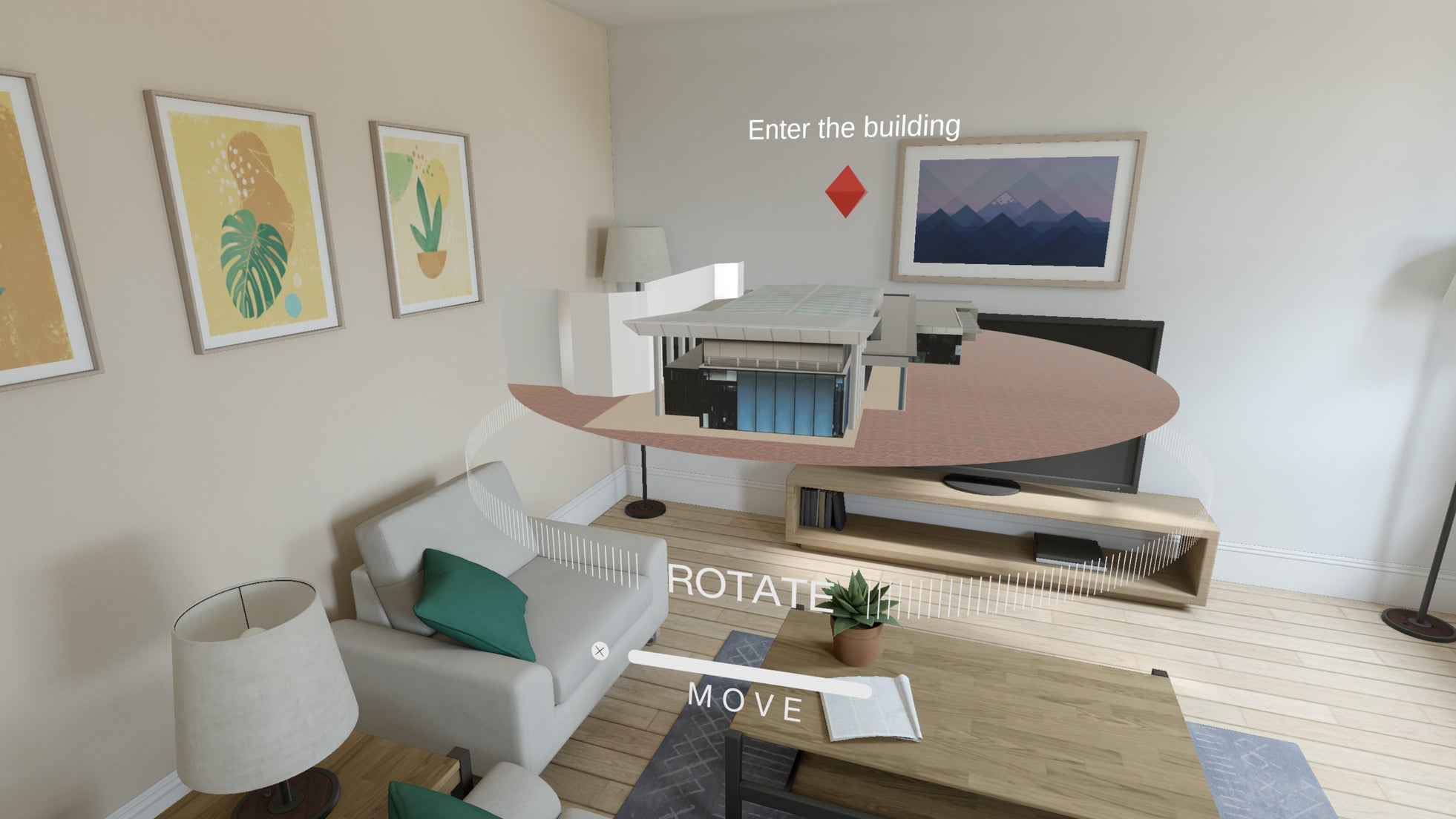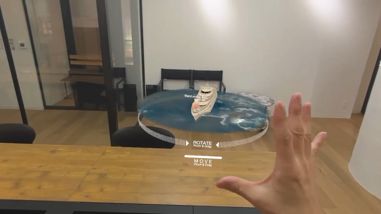 | 『FlexiViewer』は、Apple Vision Proを活用した3Dモデルビューワーです。 3Dモデルの内部に入り込むような没入体験を通じて、従来の写真や動画などの平面情報よりも直感的なプレゼンテーションを提供することが可能です。 |