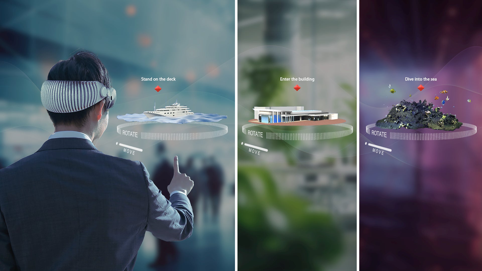 | 船舶、建設物、アクアリウム(AI機能搭載)の3種類のコンテンツを、俯瞰と没入の視点で確認&体験可能 |